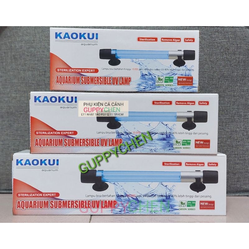 Kích thước đèn: + UV 5W: 18 cm dùng cho hồ nhỏ hơn 300 L + UV 7W: 20 cm dùng cho hồ nhỏ hơn 500 L + UV 9W: 24 cm dùng cho hồ nhỏ hơn 700 L + UV 11W: cm dùng cho hồ nhỏ hơn 1000 L + UV 13W: cm dùng cho hồ nhỏ hơn 1500 L + UV 15W: cm dùng cho hồ lớn hơn 1500 L